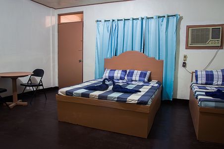 One queen size bed, One double size bed, with space for two more extra beds, Private toilet and bath,accommodates four-six persons (P1,450/night only)